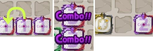 コンボのダイス同士を合成するとランダムに別のダイスになり、コンボのダイスのコンボ数が2になる。コンボ数は無限に稼げる。