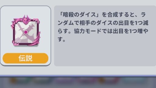 同じ出目で合成することのできるダイス!最も汎用性が高く、多くのデッキに採用される。実質ダイスが4つのデッキになるので、成長させやすい!!